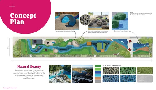 “There were four excellent proposals received for the Cass Square Playground Working Group to consider,” advises Mayor Lash. “However, the Creospace proposal resonated with us for the considered approach they had taken to develop the proposal. We consider that they had really understood the concept that we were looking for and undertook very thorough research. They looked at what was already available in the play space around Hokitika, and what points of difference could be offered at Cass Square. The concept provided us with different options, and they have thought about some of the icons of Hokitika and how to incorporate them into the design. They also included accessibility aspects, which will enable the whole family to enjoy the playground.”
